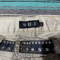 KHJ Size 35 Measurement : waist : 17.5" (edge to edge) outseam : 42.5" inseam : 32.5" front rise : 9" back rise : 14" leg opening : 7" Used Good Condition
