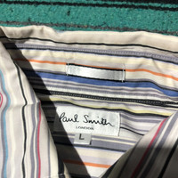 Paul Smith Rainbow Striped Button Up Shirt Condition : products are worn but in a great condition any serious flaws have been photographed size : L Measurement Chest : 21.75" Length : 30" Note Ship to worldwide. delivery is a bit long because of big days like Christmas, Chinese New Year etc. all item will be shipped within 1-3 days after payment is received. shipping with express service usually take 7 days. please be patient when awaiting shipment. __________________ Don't worry about customs tax or fees. I always declare as "GIFT" and put the value item $10-$20 PayPal Only