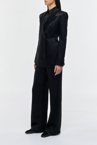 The Aleah Blazer in luminous silk featuring a delicate flower motif unites pure feminity with tailored function. Details: - 100% Silk - Peak lapel - Double-breasted - Dual Lapels - Made in Italy Size and Fit: Fits true to size. Model is 5'11" and wearing a size 38.