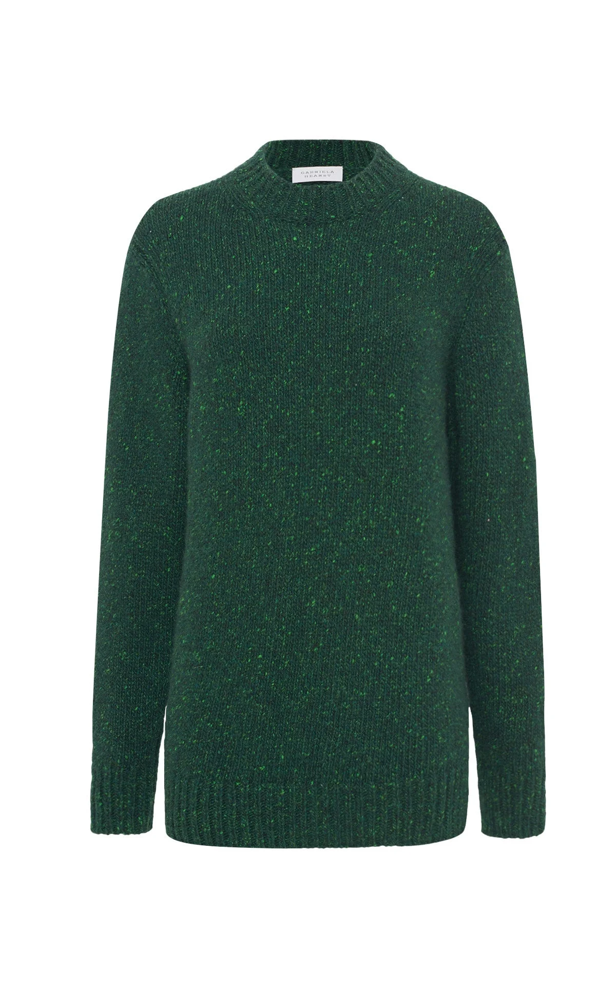 Alfie Knit Sweater in English Green Speckled Aran Cashmere