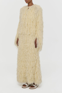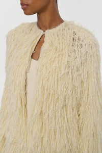 Amina Fringe Knit Jacket in Off White Silk Cashmere