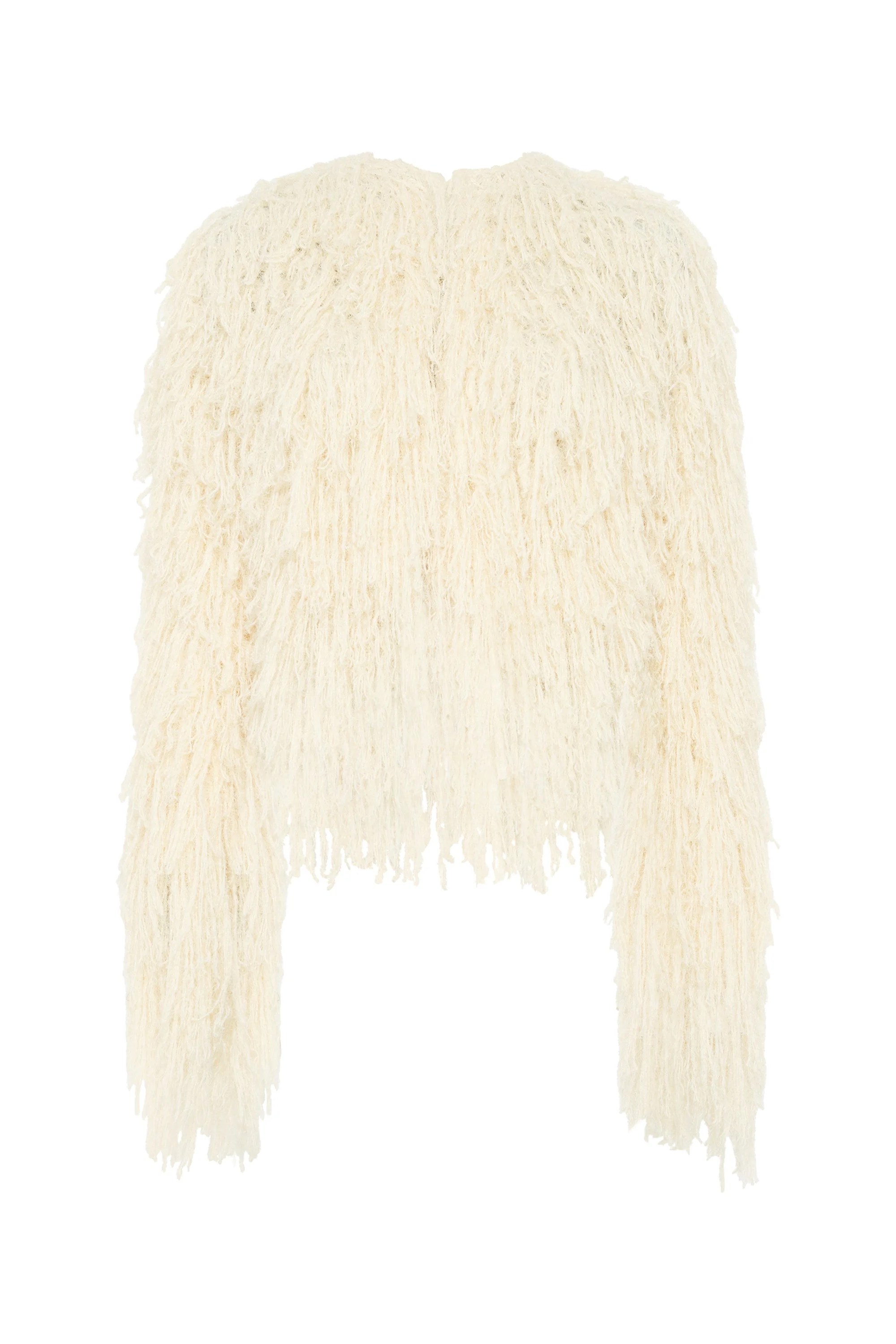 The Amina Jacket is specially knit to give shaggy texture in a silk cashmere blend. Details: - 58% Silk, 42% Cashmere - Detailed Novelty Knit - Made in Italy