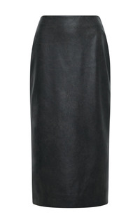 The Amon Skirt embodies a slim, clean flattering form. In 100% leather, this graphic piece subtly celebrates the material's distressed, modern texture. Details: - 100% Calf leather - Pencil silhouette - High waisted - Italian sizing - Made in Italy Size and Fit: Standard fit. Fits true to size. Model is 5'11" and wearing a size 38.