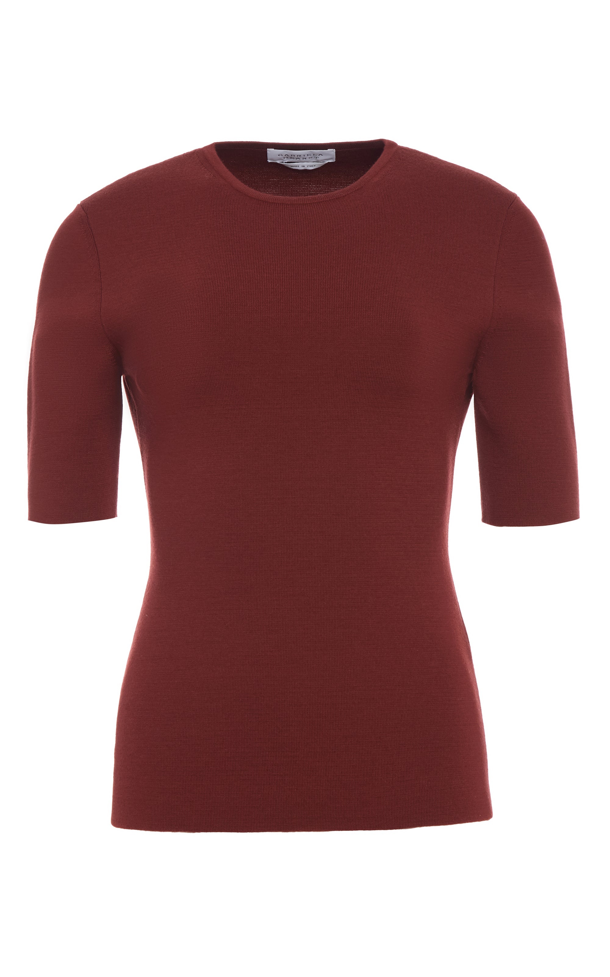 Knit in a full milano stitch, the Andrius Top has a density that supports the body while still being soft and comfortable to wear. It is made in 100% extrafine merino and pairs beautifully with the Debutante Skirt. Details: - 100% merino wool - Crew neckline - Hip length - Elbow-length sleeves - Pullover style - Made in Italy