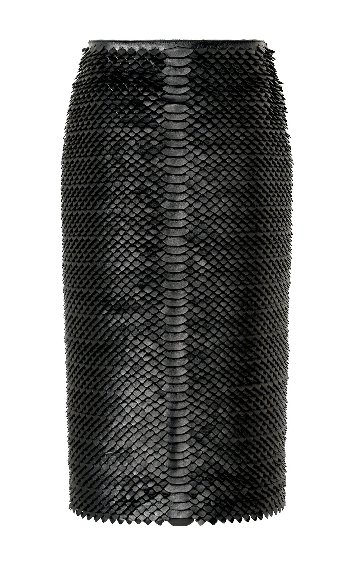 The Antia Skirt is crafted from supple calf leather using a delicate, intricate, hand-embroidered technique that evokes the texture of snake skin. Its sleek pencil silhouette offers a raw, yet polished finish. Details: - 100% Calf Leather - High-rise - Knee-length - Slim fit - Hidden back zipper closure - Pencil style - Made in Italy