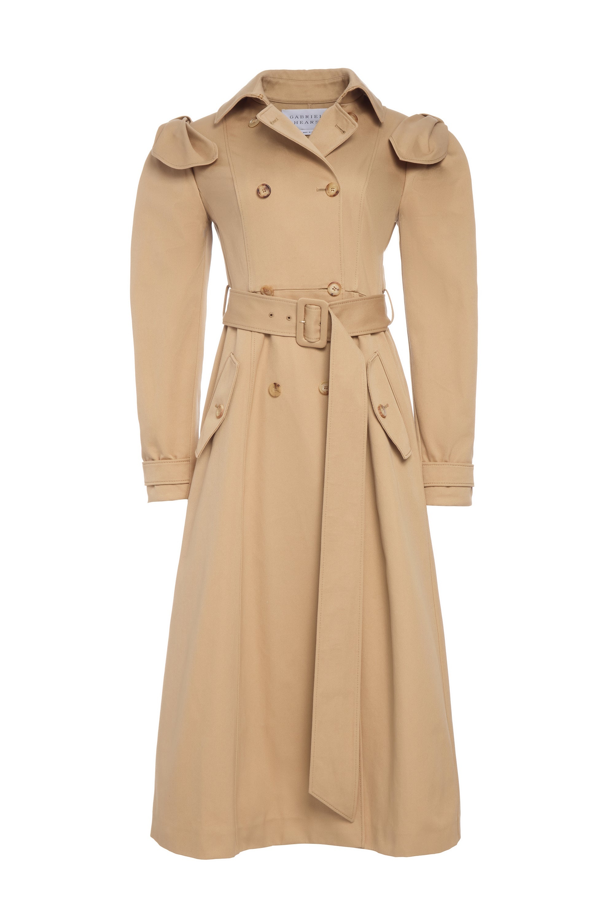 The Benedict Coat, with its A-line silhouette and bow-adorned shoulders, is a feminine reinterpretation of a utilitarian classic. Crafted in rare Sea Island cotton poplin, unique as it is grown on small local farms in Barbados and irrigated solely with rainwater. Details: - 100% Sea Island Cotton - Buttoned flap pockets - Hook fastening - Double-breasted - Button closure - Detachable Belt - Dual Pockets - Point Collar - Shoulder Bow details - Cuff tabs - Full length - Made in Italy