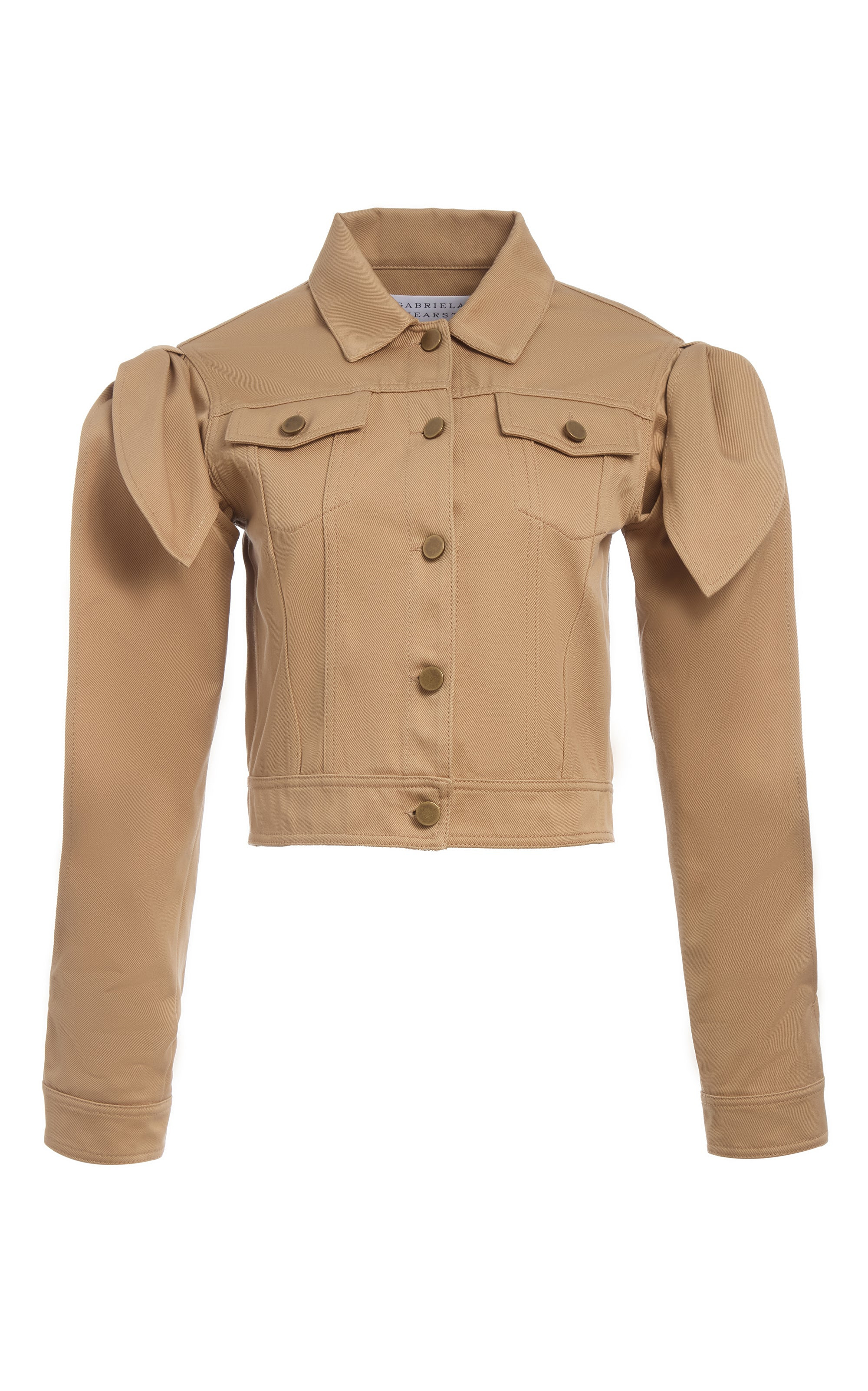 The Briella Jacket features bow-adorned shoulders, contrasted by a body constructed in the style of a classic denim trucker jacket. Utilitarian yet delicate, it is crafted from rare Sea Island cotton poplin—grown exclusively on small local farms in Barbados and irrigated solely by rainwater—offering exceptional softness and durability. Details: - 100% Sea Island Cotton - Buttoned flap pockets - Made in Italy