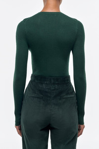 The Browning Crew Neck Sweater is in fine rib cashmere silk yarn. This slim, flattering silhouette elongates the form to create the perfect layering piece. Details: - 70% Cashmere, 30% Silk - Crew neckline - Fitted - Ribbed knit - Pullover style - Made of Italian Yarns Fits true to size. The model is 5'11" and wearing a size S.