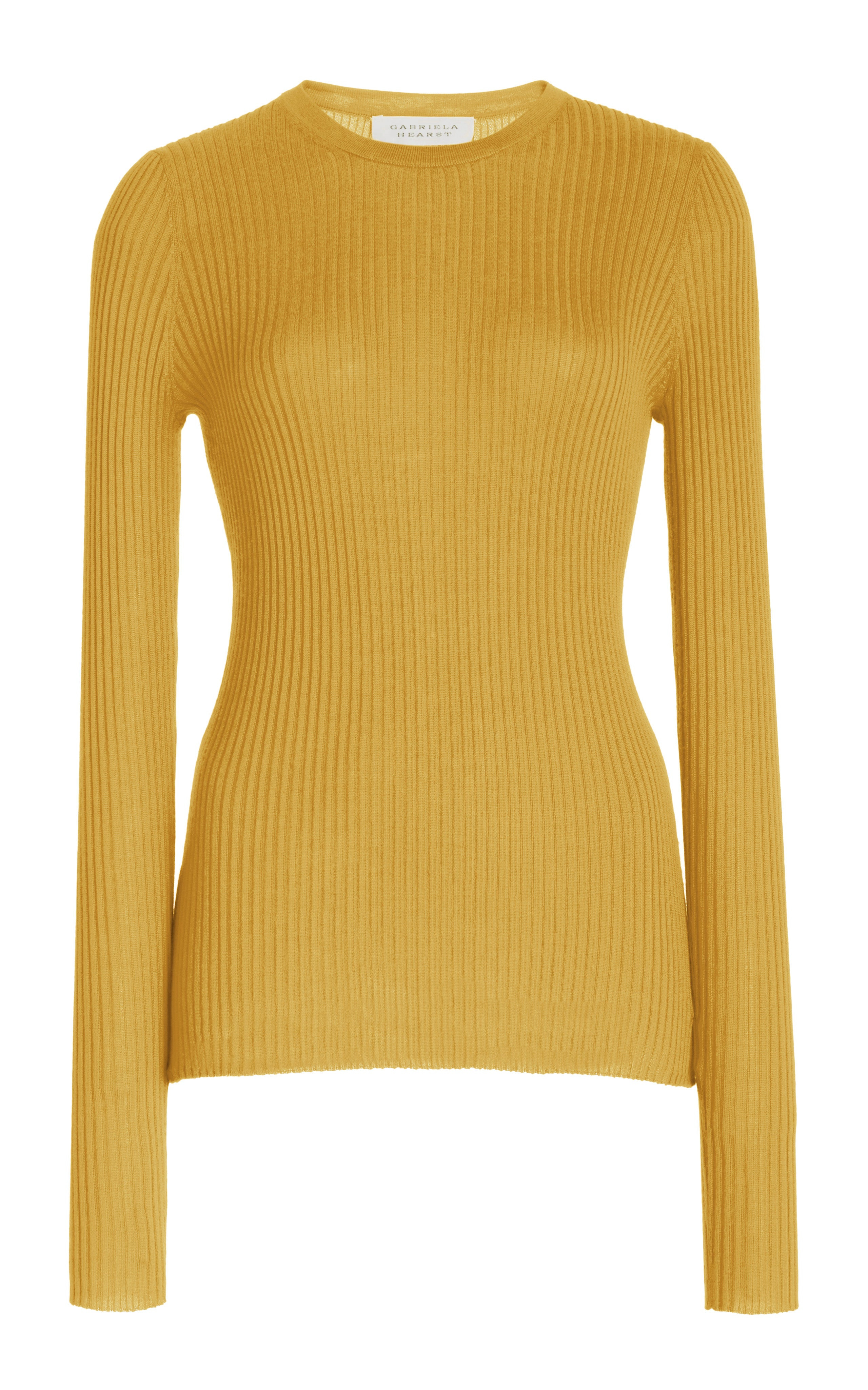 The Browning Crew Neck Sweater is in fine rib cashmere silk yarn. This slim, flattering silhouette elongates the form to create the perfect layering piece. Details: - 70% Cashmere, 30% Silk - Crew neckline - Fitted - Ribbed knit - Pullover style - Made of Italian Yarns Size and fit: Fits true to size. The model is 5'11" and wearing a size S.