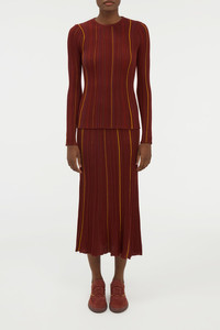 Celeano Pinstripe Knit Midi Skirt Burnt Sienna Merino Wool