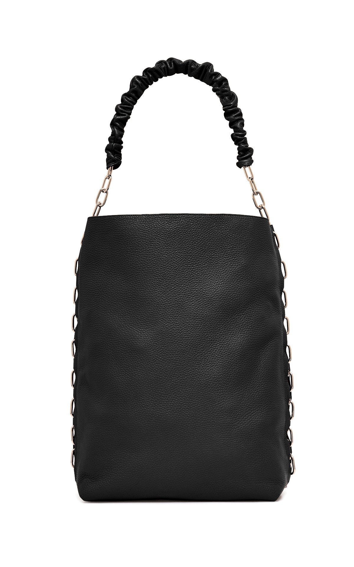 Chain Tote with rosegold hardware throughout. Includes a removable zip pouch linked with internal d-clasp hook. Details: - 100% Deer leather - Brass rosegold hardware - Interior Removable Pouch - Interlocking chain detail - Leather chain cover - Open top - Height - 16.5" Length - 15" Width - 2" - Strap Drop: 12" - Made in Italy