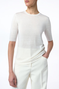 Chryse Knit T-Shirt in Ivory Cashmere Silk with Hemp