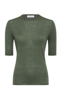 Chryse Knit T-Shirt in Olive Cashmere Silk with Hemp