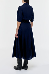 Dugald Pleated Midi Skirt in Electric Navy Aloe Linen