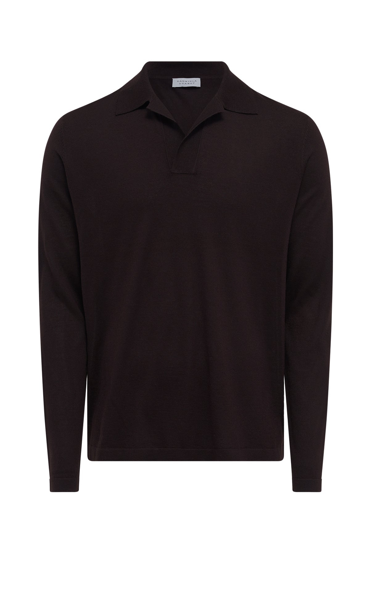Frome Knit Long Sleeve Polo in Chocolate Cashmere