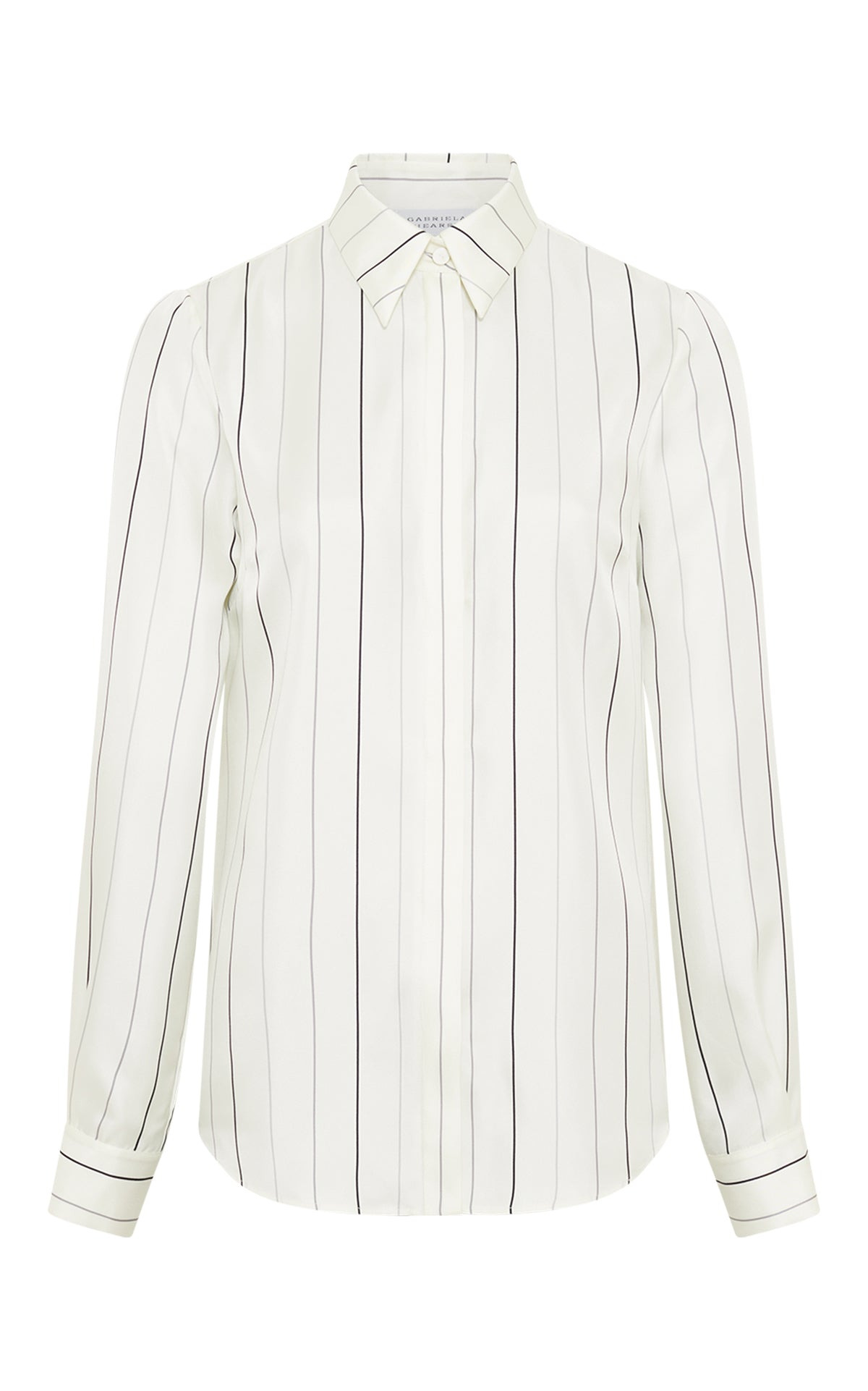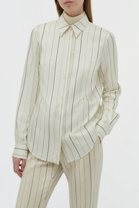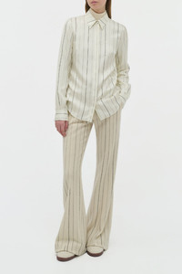 Henri Blouse in Ivory Multi Pinstripe Silk Twill