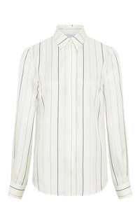 Our classic Henri blouse with center-front hidden placket and traditional shirt finishing and details interpreted on pinstripe silk twill. Details: - 100% Silk - Long sleeve - Button-up - Hidden placket - Italian sizing - Made in Italy Size and Fit: Fits true to size. Model is 5'11" and wearing a size 38.