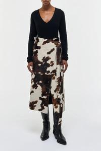Idalia Wrap Midi Skirt in Ivory Cognac Multi Pony Hair
