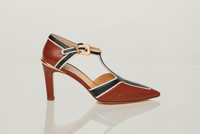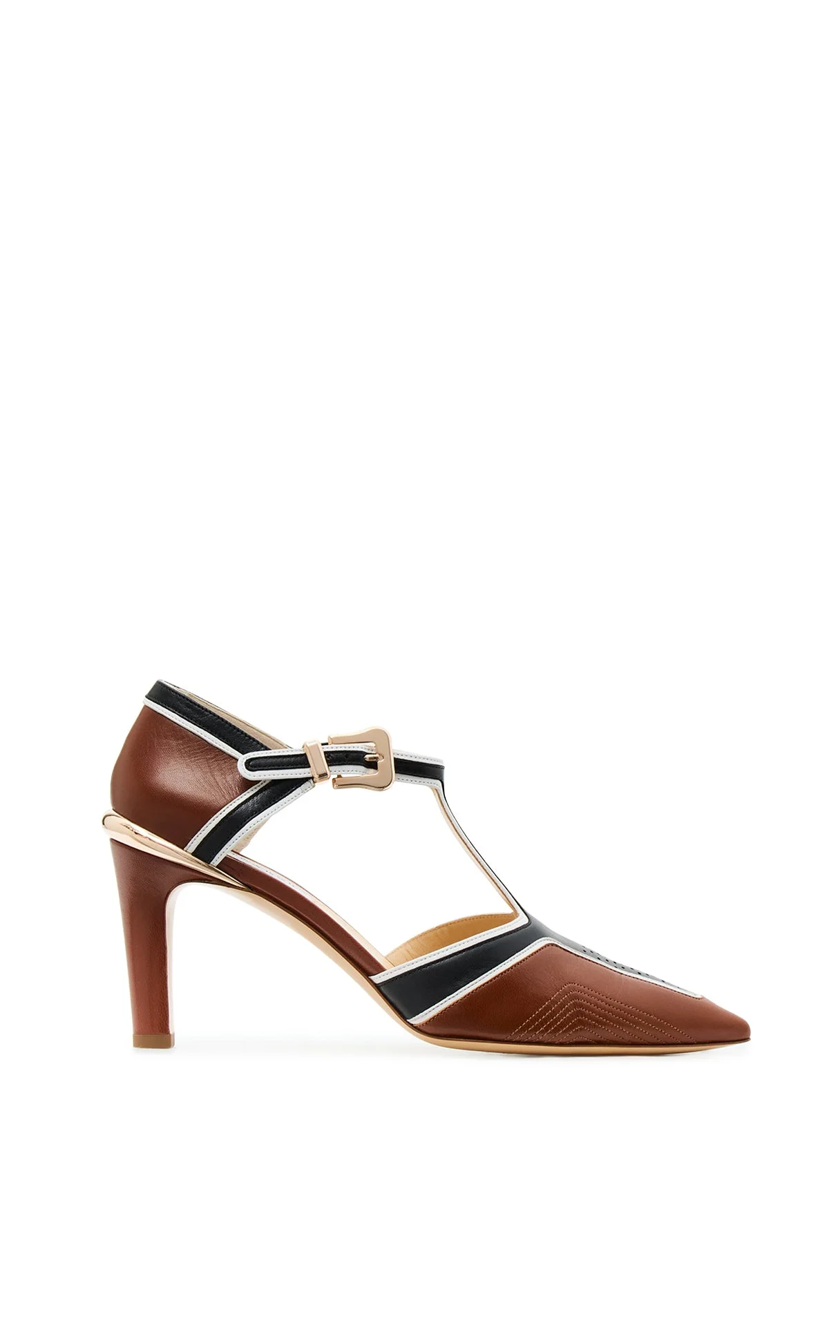 Indi Moto T-Strap Pump in Cognac Multi Leather