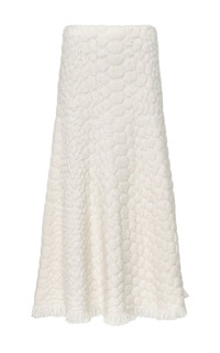 Kanta Fringe Knit Midi Skirt in Ivory Cashmere