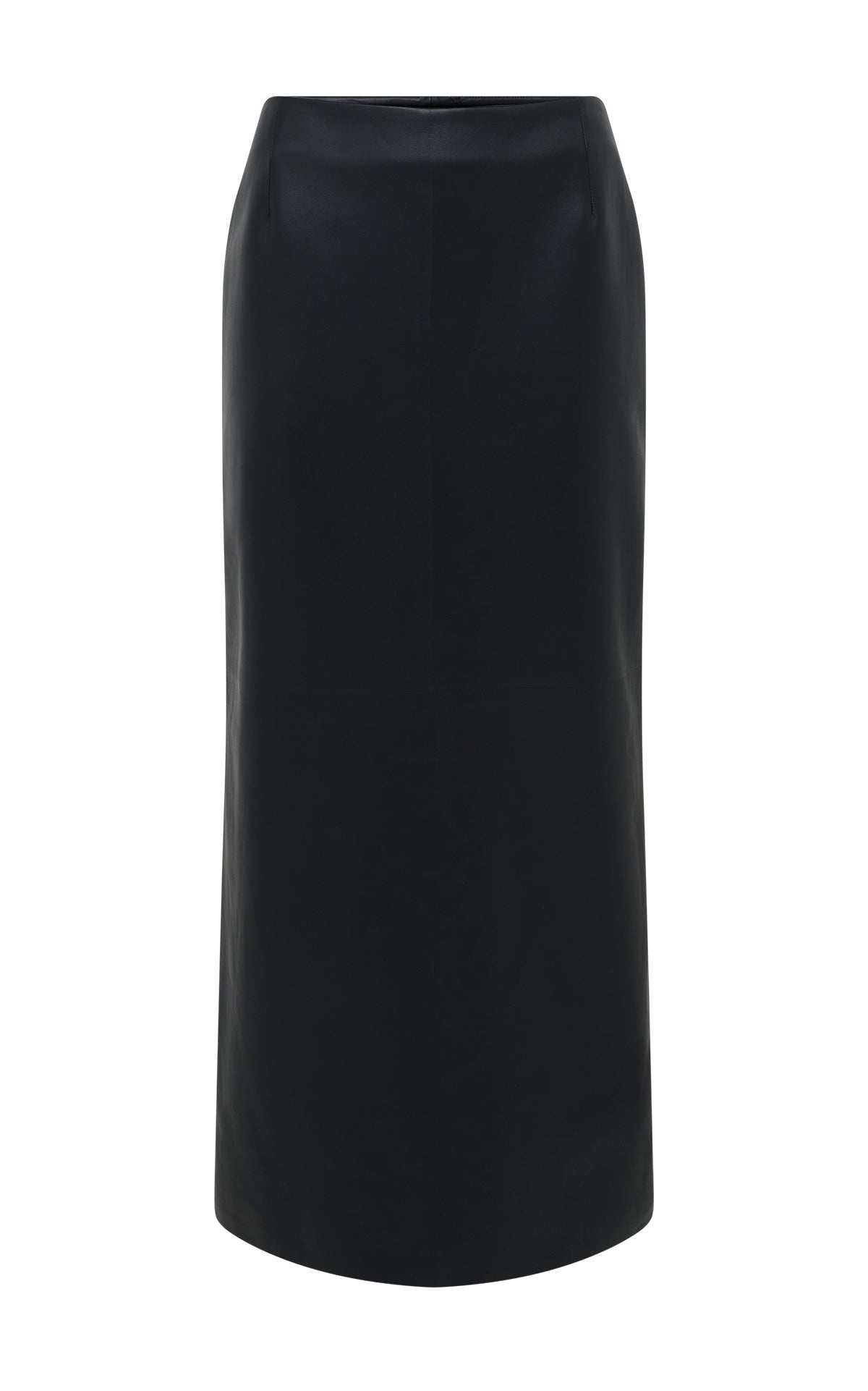 The Manuela pencil skirt embodies a slim, clean flattering form. Crafted in 100% leather, this graphic piece subtly celebrates the material's distressed, modern texture. Details: - 100% Lamb leather - High-rise - Midi-length - Slim fit - Made in Italy