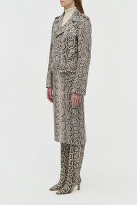 The Manuela Skirt is a timeless embodiment of the sensuous serpent—showcasing elegance and edge in Burmese python. This wild Burmese python (Python bivittatus) is sourced from the Florida Everglades, where it is a highly invasive species. Just one 20-foot python can consume up to 39 endangered animals and over 460 native species in its lifetime. With 90% of native Everglades wildlife populations under threat, the need is great for removing these predators. By doing so, this initiative helps restore ecological balance to one of the most unique ecosystems in the world. The python hides are tanned using traditional Italian techniques, resulting in a luxurious and smooth snakeskin hand-feel. This purpose-driven harvesting of exotic leathers provides a meaningful, sustainable alternative in luxury leather production. Details: - 100% Python Bivivatutus Leather (Wild), Everglades, Florida. - High-rise - Midi-length - Slim fit - Pencil style - Zipped back closure - Made in Italy