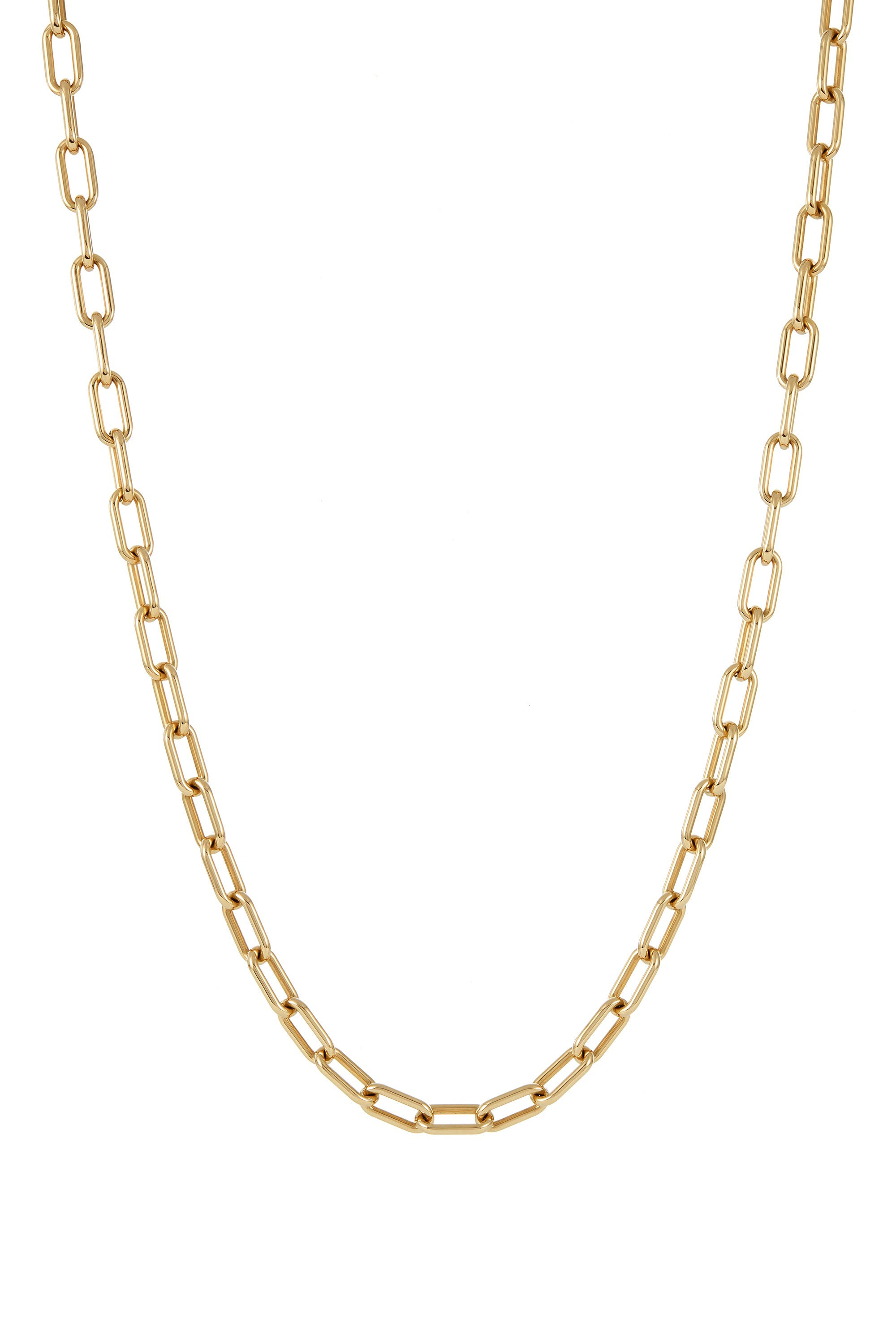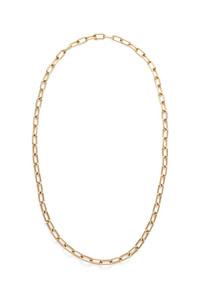 Made of 62 smaller interlocking gold chain links, this 18K yellow gold chain is elegant and versatile. In the interest of maintaining our brand values of sustainability, our fine jewelry is produced in limited quantities but available to shop online. Please email customercare@gabrielahearst.com for additional sizes made-to-order.