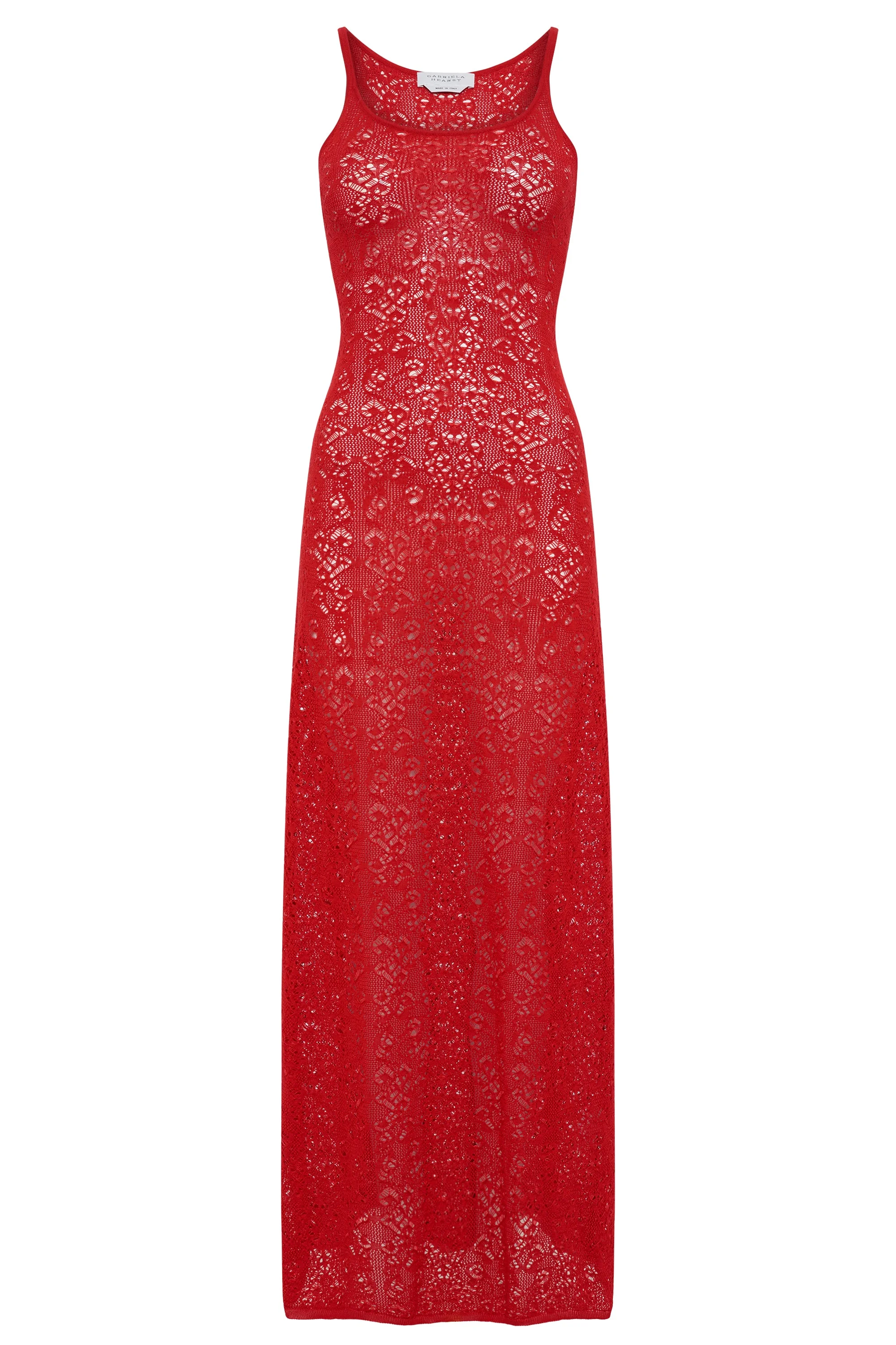 Knit from supple 100% merino wool yarn, the Meridian Dress features a lace construction that hugs the body and elongates the feminine form, finished with a softly scooped decollete. Details: - 100% Merino Wool - 100% Virgin Wool Lining - Scoop Neckline - Sleeveless - Full Length - Made in Italy