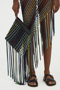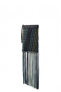 A playful take on structure and movement, this pouch features a woven grid of multicolored cords and dramatic fringe detailing. Finished with a slim leather wrist strap for easy carry. Details: - 100% Silk In the interest of maintaining our brand values of sustainability, the Naila Fringe Pouch in Black Multi Nappa Leather & Silk Macrame is produced in limited quantities and is available by special order only. To order your bag, please complete the following form and click the “Inquire” button. You will be notified when your item becomes available. For any inquiries please contact us at customercare@gabrielahearst.com or call +1 212 966 2484 Monday through Friday, 9:00 AM to 6:00 PM EST