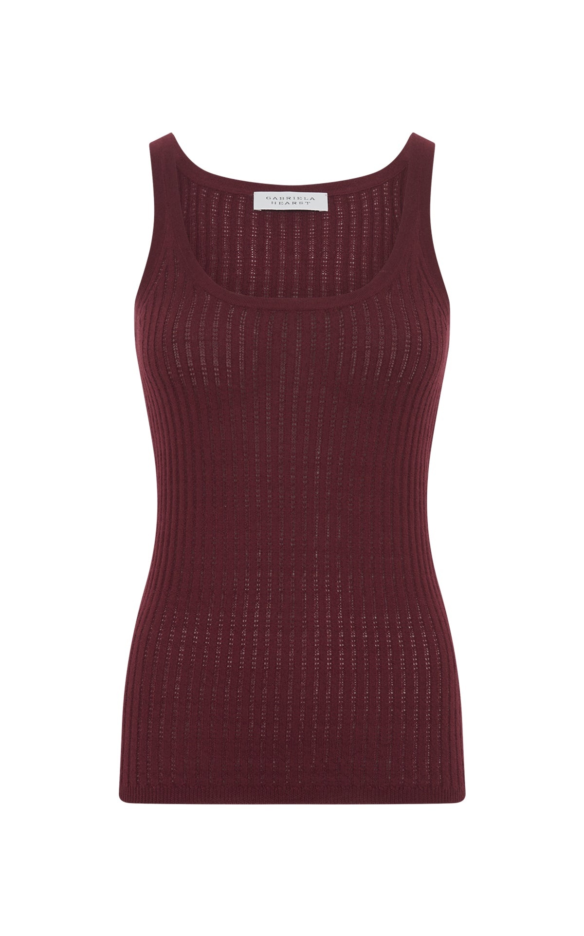 Nevin Pointelle Knit Tank Top in Bordeaux Cashmere Silk