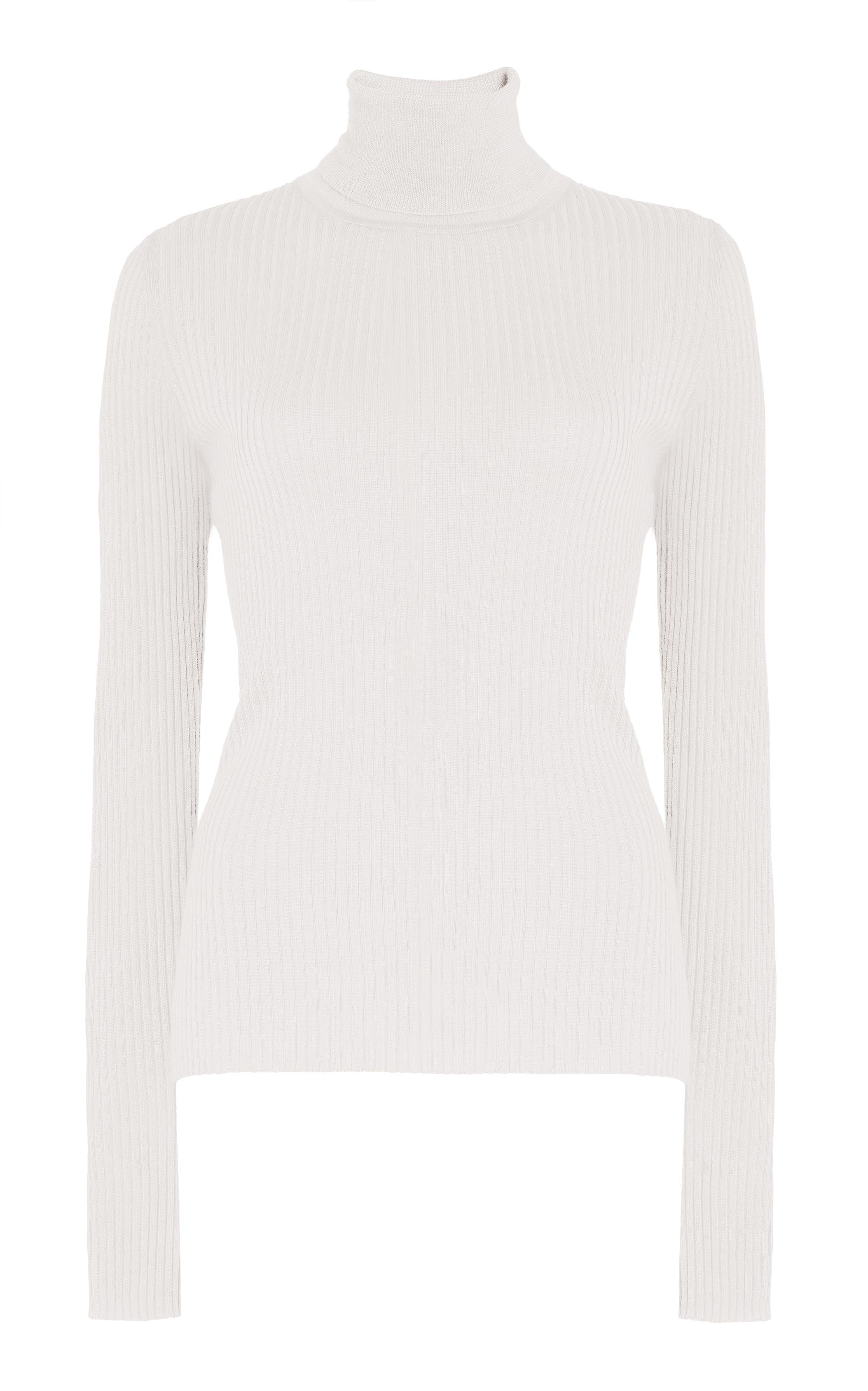 This fitted turtleneck is made of the highest quality cashmere. The knitted top is simple and versatile and features a fine gauge rib. Details: - 70% Cashmere, 30% Silk - Long sleeves - Slim fit - Pullover style - Made of Italian Yarns Size and Fit: Fits true to size. Model is 5'11"" and wearing a size S.