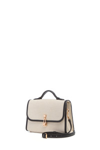 Small Leonora Flap Bag in Beige Linen