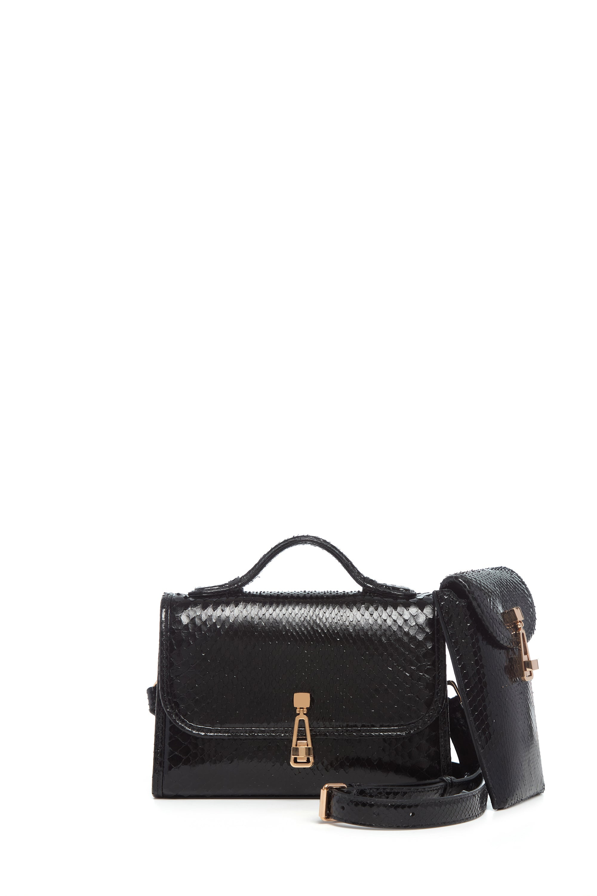 Small Leonora Flap Bag in Black Snakeskin with Sunglasses Pouch