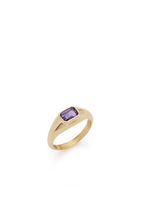 This classic, small 18K yellow gold ring features a faceted amethyst stone in the center. In the interest of maintaining our brand values of sustainability, our fine jewelry is produced in limited quantities but available to shop online. Please email customercare@gabrielahearst.com for additional sizes made-to-order.