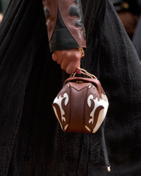 The Soft Demi Western clutch with chain is a refined evolution of our classic Soft Demi clutch, now featuring a sleek chain for effortless carrying. Designed for fluid movement, its free-form handle is complemented by a distinctive round pouch that unfolds with elegance. Expertly crafted from supple Italian Nappa leather. Details: - 100% Nappa leather exterior - 100% Nappa leather interior - Magnetic closure - One credit card slot - Fits iPhone Pro Max - Chain length: 6.5" - Length: 7.75" - Height: 5.5” - Width: 5” - Made in Italy In the interest of maintaining our brand values of sustainability, this item is produced in limited quantities but available to shop online.