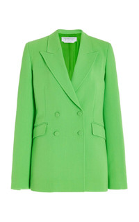 The Stephanie Blazer is an update to our classic double-breasted Angela silhouette. In this version we added a stronger, prouder shoulder pad, while staying true to timeless elegance of this silhouette. In textured wool crepe, a strong tailored look is created. Details: - 100% Virgin Wool. Weaving/Dying/Finishing Italy - Dry Clean. Size and Fit: Fits true to size. Model is 5'11" and wearing a size 38.
