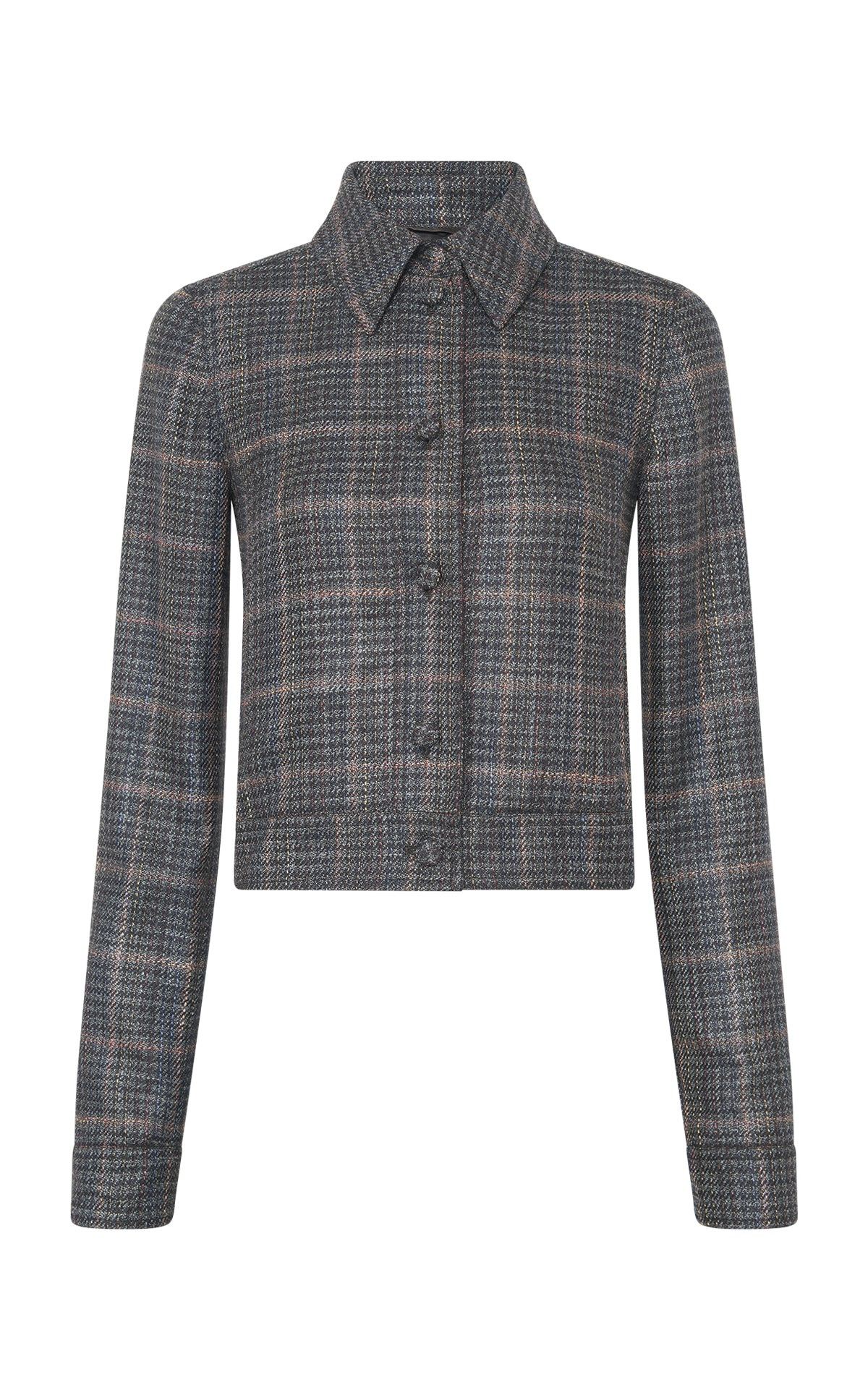 The Thereza jacket redefines classic outerwear in a wool silk blend with a clubcheck plaid finish; creating an enticing form; A shorter length style, with classic collar and front button fastenings. Details: - 88% Wool (Uruguay/Argentina), 12% Silk (China). - Point Collar - Button-up closure - Cropped silhouette - Made in Italy