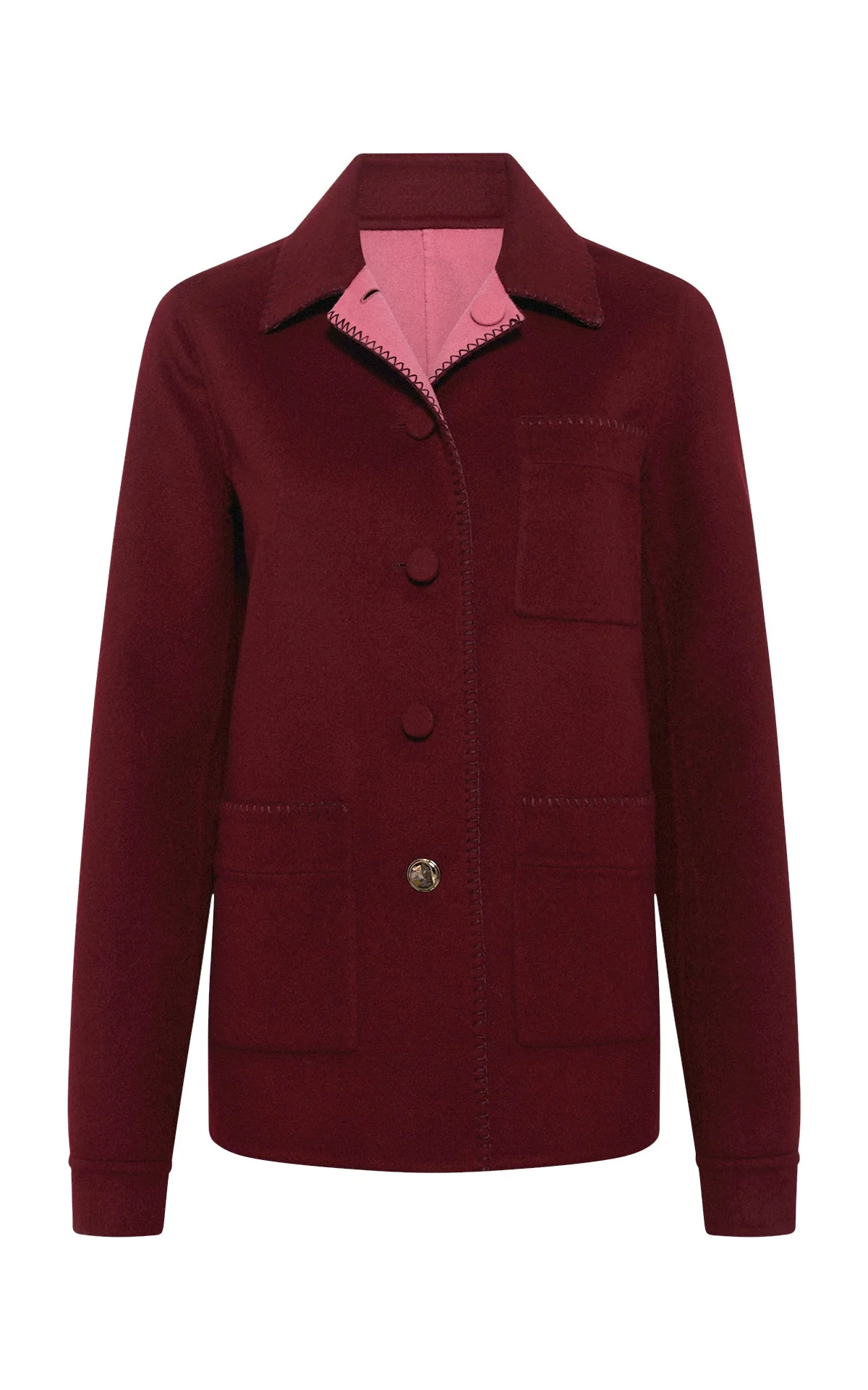 Ulu Reversible Chore Jacket in Bordeaux & Fuchsia Double-face Recycled Cashmere