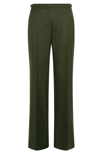 Vesta Flare Pant in Olive Virgin Wool Silk with Linen