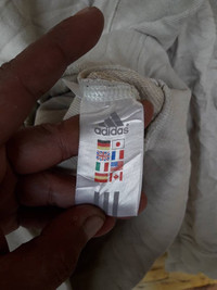 Material:- cotton Tag Label:- adidas Made in China Size on tag:- large CONDITION No hole no stain no faded detected,Still bright colour,great condition.Please don't expect it to be like new or in pristine condition. See our listing pictures for full details and description of any imperfections. KINDLY TO READ DESCRIPTIONS CAREFULLY BEFORE BUYING!!! Thank you so much for your visit. IF YOU HAVE ANY QUESTION,FEEL FREE TO ASK. Please provide your contact phone number as the shipping company always need the phone number to help delivering