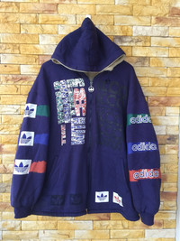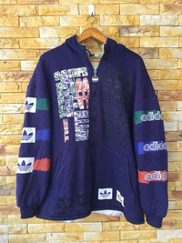 Material:- cotton Tag label:-adidas Made in Japan Colour:-blue Size on tag:- large CONDITION Have some faded near Hoodies and front (please see picture) no hole no stain detected,good vintage condition.Please don't expect it to be like new or in pristine condition. See our listing pictures for full details and description of any imperfections. KINDLY TO READ DESCRIPTIONS CAREFULLY BEFORE BUYING!!! Thank you so much for your visit. IF YOU HAVE ANY QUESTION,FEEL FREE TO ASK. IMPORTANCE Please provide your contact phone number(important) as the shipping company always need the phone number to help delivering # Thank for watching at my store