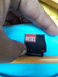 Material:- cotton Tag Label:- diesel Made in Greece Size on tag:- large CONDITION No hole no stain no faded detected,Still bright colour,great condition.Please don't expect it to be like new or in pristine condition. See our listing pictures for full details and description of any imperfections. KINDLY TO READ DESCRIPTIONS CAREFULLY BEFORE BUYING!!! Thank you so much for your visit. IF YOU HAVE ANY QUESTION,FEEL FREE TO ASK. Please provide your contact phone number as the shipping company always need the phone number to help delivering