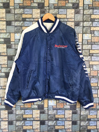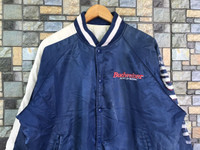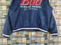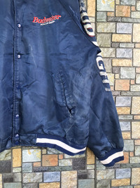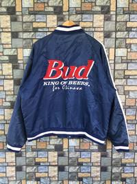 KINDLY PLEASE READ ALL THE DESCRIPTION BEFORE PURCHASING..!!DON’T HESITATE TO ASK ANY QUESTION:- Item Name: VTG BUDWEISER KING OF BEER VARSITY JACKET Tag Label Read: MISSING Tag Size Read: LARGE (please check the actual measurement below) Kindly see actual measurements:- (All measurements were taken lying flat) Actual size manual measurement (approximately) Underarm To Underarm:- 26.5 INCHES Lenght (back collar to hem):- 27 INCHES Sleeve:- 24 INCHES Materials:-100% nylon MADE IN JAPAN Detail Condition:- VINTAGE CONDITION (USED ITEM) Colour:- BLUE Stain:- NONE Faded:- HAVE MANY NEAR FRONT,BACK AND SLEEVE Hole:- NONE Others:- NONE Percent Condition:- 7/10 Kindly see all pictures Thank you so much for visit • Please pay accepted offer immediately • 100% authentic,all final sales,no refunds/returns •make sure your PayPal is ready before make an offer,otherwise please do not offer!!! STANDARD SHIPPING 15$ With tracking number •England 1-2 weeks •USA 2-3 weeks •Asia 1-2 weeks •Europe 2-4 weeks •Australia,New Zealand 3 weeks to 5 weeks •Rest Of world depends on your post DHL FAST SHIPPING!!! •3-6 days Worldwide,price depend weight(minimal price 33$) •IF U PREFER FAST SHIPPING,PLEASE DM ME PAYMENT / SHIPPING • I accept payment though GRAILED only,your tracking information will be sent to you • if you like what I’m selling make sure you click “ follow seller ” next to my name! this will allow to keep up with all of my listings in the new feed under the my GRAILED tab THANK YOU SO MUCH FOR WATCHING HAPPY SHOPPING