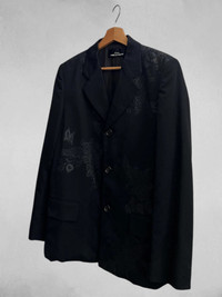 Condition: 8/10 • Good used with few tiny holes. No major defects, damage etc. • Has 2 pockets. • Material: Surface - 100% Wool Lining - 100% Cupra • No size on tag. Fit best to men’s S or women’s L. Refer manual measurements for sizing. • Manual Measurements: Chest - 19in Length - 28in Shoulders - 16in Sleeve Length - 24in #reikawakubo #yohjiyamamoto #isseymiyake #avantgarde