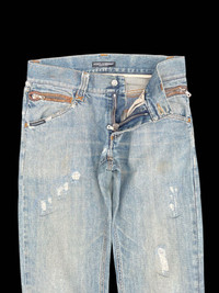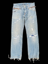 Condition: As per photos • Good used with signs of wear, distressed, minor dirt stains. • Leather pockets & logo at the back. • Has 6 pockets in total. • Size 44 on tag. Refer manual measurements for sizing. • Manual Measurements: Waist - 16in Length - 39.5in Inseam - 30in Front Rise - 8.5in Thigh - 11in Knee - 8.27in Leg Opening - 8in #hedislimane #kimjones #tomford #italiandesigner #saintlaurent #diorhomme