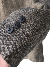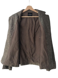 Condition: 8/10 • Good used without damage, defects etc. • Has 3 pockets • Material: Outer - Wool 88% Cotton 10% Polyurethane 2% Lining - Cupra • Size 42 on tag. Refer manual measurements for sizing.