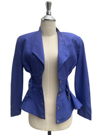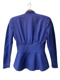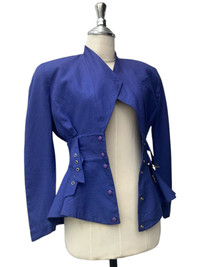 Condition: 8/10 • Color: Cobalt Blue/Blue Purple-ish • Good used with minimal signs of wear. No major defects, damage etc. • No pocket. • Material: 80% Linen 20% Rayon • Size 7AR on tag. Refer manual measurements for sizing. • Manual Measurements: Bust - 18in Length - 23.5in Shoulders - 16.5in Sleeve Length - 23.5in Waist - 12.5in #avantgarde #luxury #80sFashion #designerfashion