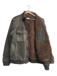 Condition: 8/10 • Good used with slightly faded. Tears at wrist/sleeve part. Minor stains. • Has 6 pockets in total. • Material: Outer - Cotton 100% Lining Body - Polyester 80% Acrylic 20% Rib - Acrylic 70% Wool 20% • Size L on tag. Refer manual measurements for sizing.