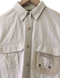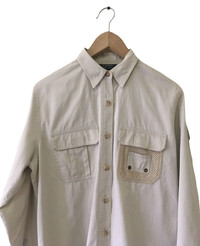 Condition: 8/10 • Good used without damage, defects etc. • Has flaws/stains but not really obvious (refer photo). • 2 chest pockets with 1 arm pocket. • 100% Cotton • Size M on tag. Refer manual measurements for sizing.
