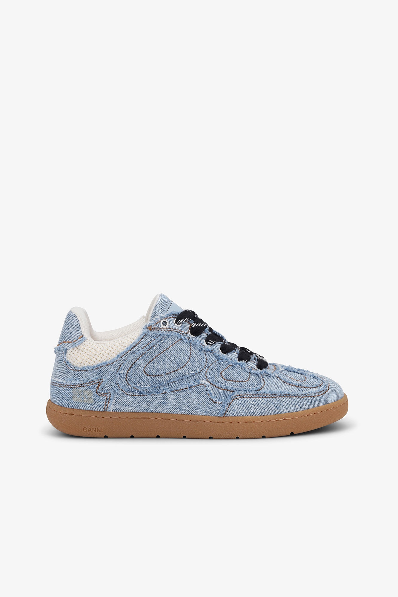 These sneakers feature a denim upper with butterfly-inspired raw edges and a textured mesh detail. They have a hidden wedge, a stitched gum sole and a GANNI logo on the side. DETAILS - 55% cotton, 40% lyocell, 5% recycled cotton. Learn more about our materials - Denim upper with raw butterfly-shaped edges - Frilled edge detail - Puffy collar and soft cupsole for comfort - Red laces and extra color-block laces - Hidden wedge inside for subtle lift - Gum Sole stitched to the upper part - Embossed logo on the side of the gum sole - Metallic butterfly lace pass - Butterfly hot stamp on heel - Fabric label on tongue - Textured mesh collar detail - Part of Upper contains Organic Cotton - Part of Upper contains TENCEL™ Lyocell - In-sole contains 70% Recycled Cotton 30% LENZING™ ECOVERO™ Made in: Portugal Product ID: S3084 SIZE & FIT - For personalised guidance on sizing and fit, contact our Customer Service team - here - .